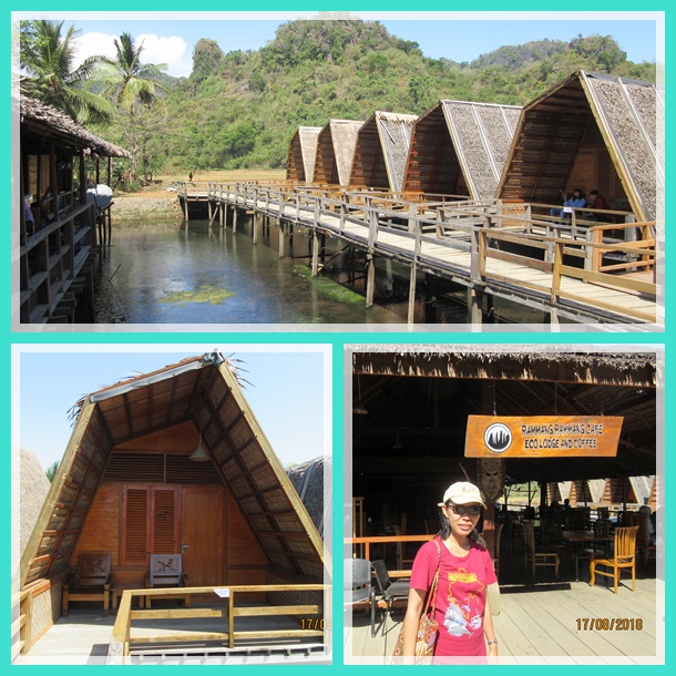 Dari desa Berua ini, kami naik perahu lagi ke arah dermaga 2, tapi dilewatin lagi sedikit dan diturunkan di dermaga Rammang Rammang Ecolodge & Café. Ada tempat makan (menu standard) dan 8 lodge buat menginap. Tanpa AC jadi back to nature ceritanya. Pesan makan di sini walau hanya nasi goreng, butuh waktu 30 menit untuk menunggu masakan terhidang. Wow banget ya. Ini menghabiskan waktu, sebaiknya bawa bekal saja lain kali.