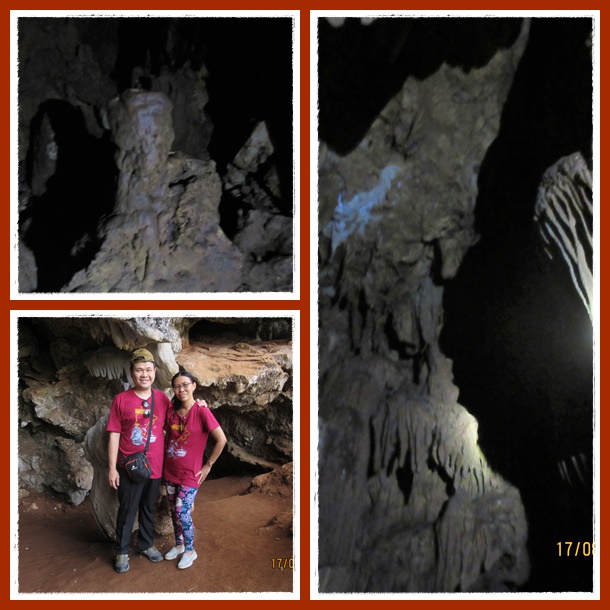 Nah di sini baru ada yang menarik, yaitu kami betul2 masuk gua, tepatnya naik ke lubang yang konon dulunya ada pertapa di sini. Sayangnya di sini sangat gelap. Hanya ada satu penerangan yaitu senter dari si pemandu itu. Untuk menuju lubang, sudah disediakan tangga kayu semi permanen dan 2 utas tambang. Wah buat grup pecinta alam, pastinya sangat mudah untuk naik ke atas. Buat yang awam kayak kami, perlu sedikit perjuangan. Lubangnya lumayan sempit, badan Jeff pas2an deh tuh. Sampai di atas lubang, ada batu yang menyerupai pertapa. Ada juga beberapa stalagtit yang jika dipukul dengan jari akan mengeluarkan nada berbeda-beda seperti alat musik. Selain itu ada stalagtit besar yang berkelap kelip ketika diberi cahaya. Jadi memang disebut gua berlian karena stalaktit nya mengandung bahan berkelip ketika diberi cahaya, tapi bukan mengandung berlian sehingga mudah pecah.
