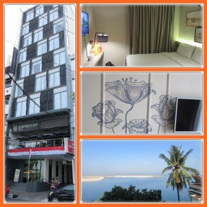 Pagi-pagi, saat membuka gorden kamar hotel, barulah jelas terlihat Pantai Losari. Memang kami sengaja pilih kamar superior sea view yang menghadap laut, harganya hanya Rp. 364.500,- sudah termasuk breakfast. Hotel Expressia ini tergolong baru. Hotel budget yang bersih dan kamarnya nyaman. Oke banget untuk kami yang cuma numpang tidur saja. Jalanan yang penuh pedagang pisang epe semalam sudah bersih, tidak terlihat lagi gerobak dan meja kursinya.