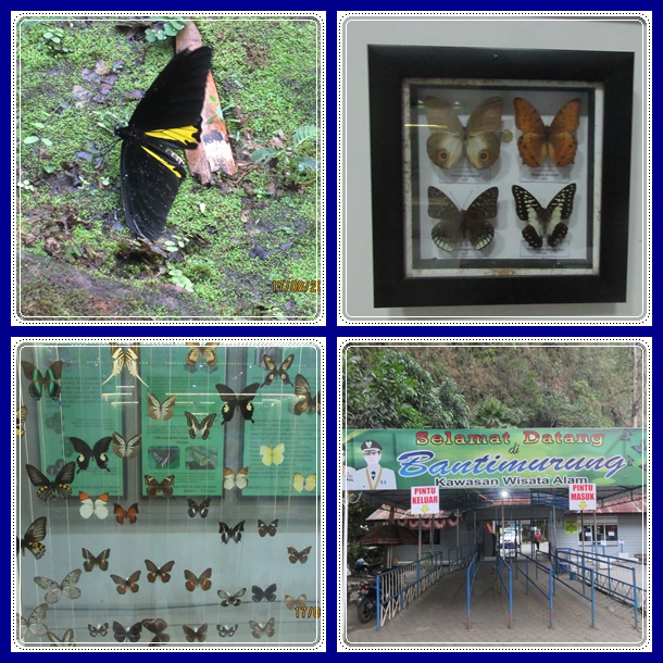 - Kawasan Wisata Alam Bantimurung. Tiket masuknya Rp. 25.000,- per orang. Di parkiran, banyak sekali pedagang souvenir kupu2 yang diawetkan. Bagus2 tapi jadi ga tega belinya. Mungkin karena diawetkan begini jadi habis ya kupu2 hidupnya. Di dalam kawasan wisatanya ada hotel Bantimurung, air terjun, kolam mandi alami, goa, danau, dll. Menarik.
