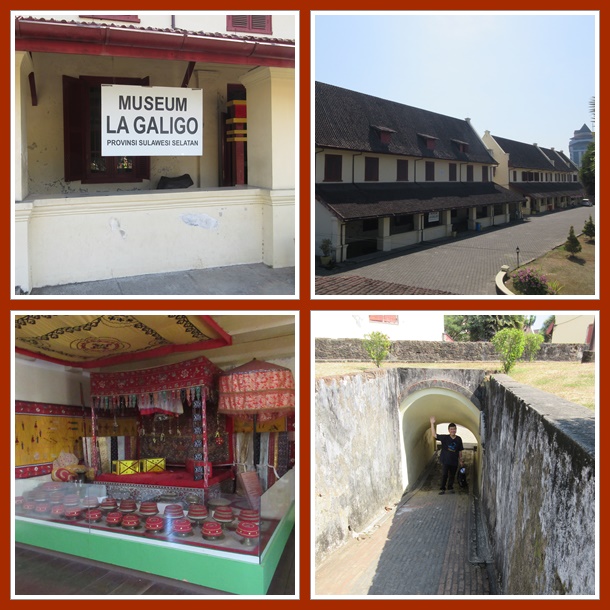 Masuk ke Fort Rotterdam itu gratis dan cukup isi buku tamu. Namun untuk masuk museum La Galigo nya, harus membayar sebesar Rp.5.000,- per orang. Museum ini terdiri dari 2 gedung yang berseberangan. Yang gedung kiri lebih kecil, berisi sejarah La Galigo dan silsilah keluarga kerajaan yang ada di Sulawesi Selatan. Yang gedung kanan lebih besar, terdiri dari 2 lantai. Isinya koleksi yang mengisahkan sejarah dan kehidupan masyarakat di Sulawesi Selatan.