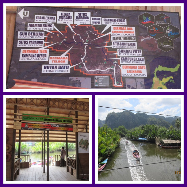 Objek wisata utama di Rammang Rammang ini adalah Desa Berua. Untuk mencapai desa ini, kami harus menaiki perahu bermotor milik penduduk setempat. Ada 2 titik dermaga, yaitu dermaga 1 yang berada persis di pinggir jalan besar dan dermaga 2 yang harus melewati jalan kecil berliku cukup jauh ke dalam. Kami dibawa ke dermaga 2 karena katanya bayar perahu dari titik ini lebih murah daripada dari dermaga 1. Harga sewa perahu standar dan resmi, tertulis di spanduk. jadi cukup nyaman untuk pengunjung.