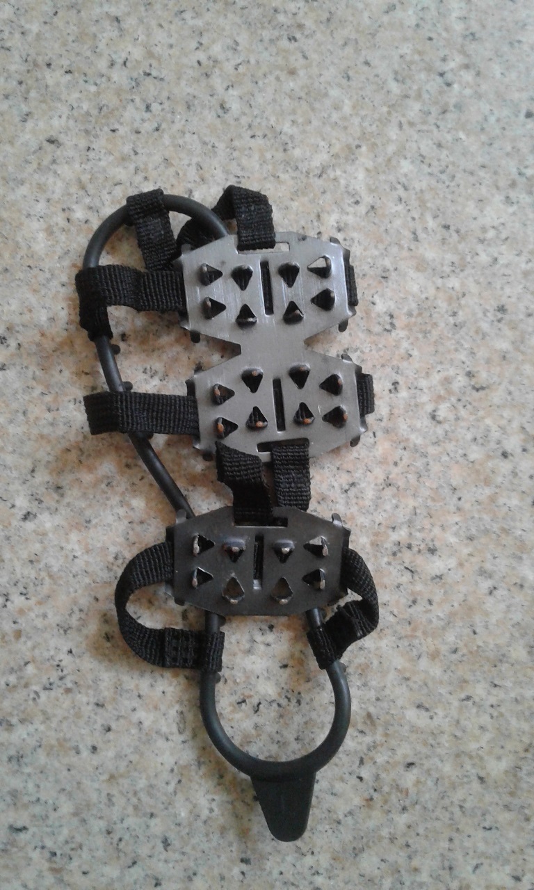Jika memang nanti banyak berjalan di atas es dan tidak menggunakan sepatu khusus winter / tapaknya kurang cocok untuk berjalan di es, maka bisa membeli tambahan gerigi bawah (shoe spikes). Banyak dijual di Harbin dan tinggal dipasang di bagian bawah dari sepatu boot kita.