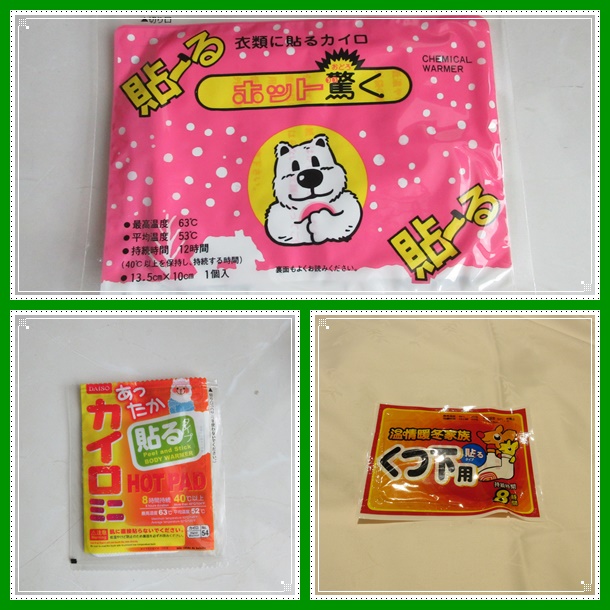 Tadi sempat saya menyebut soal heat-pack. Apa sih ini ? Jadi ada benda seperti koyo, mengeluarkan rasa hangat, tapi tidak ditempel di tubuh melainkan di pakaian atau hanya sekedar untuk dipegang2 jadi tidak ditempel. Ada yang menyebut hot pack, heat pack, kairo, body warmer, hand warmer, foot warmer. Intinya sama dan bisa dipakai sesuai kebutuhan.
