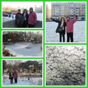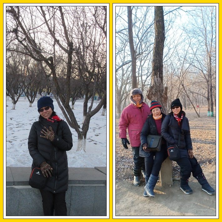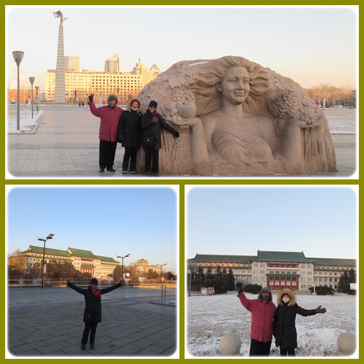 Masuk bis langsung berasa hangat. Suhu di bis kira2 10-15 derajat. Rombongan langsung diantar menuju Culture Square atau alun2 nya kota Changchun. Ada patung Sun Bird di situ. Ada juga Geological Museum, tapi kita ga masuk, hanya bisa lewat saja di depannya. Payah deh. Semuanya sudah dilingkupi salju jadi berwarna serba putih. Pohon2 berjejer tinggal ranting saja. Pemandangan yang ga akan bisa dilihat di Indonesia.