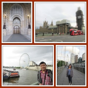 Lanjut berjalan menyeberangi Westminster Bridge, satu dari sekian banyak jembatan yang membelah sungai Thames, sungai paling terkenal di London. Walaupun sudah jam 7 malam, tapi langit masih terang benderang dan begitu banyak turis yang lalu lalang. Terlihat London Eye, salah satu ferris wheel tertinggi di dunia. Walaupun tiketnya terbilang mahal, kami lihat antriannya cukup panjang. Kami sih tidak naik.