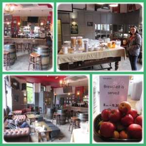 Dari London Bridge inilah, kita bisa melihat Tower Bridge yang menjadi salah satu icon kota London. Lumayan juga nih jalan2 pagi harinya. Kami kembali ke hostel pun masih jam 7.30 pagi. Breakfast gratis sebetulnya disedikan jam 8 pagi, tapi jam 7.30 ini ternyata pub tempat sarapan sudah dibuka dan sudah siap breakfastnya. Bagus juga nih, masih belum ada orang. Jadi leluasa foto2 dan pilih tempat duduk.