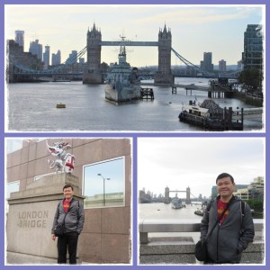 Kami jalan2 melewati Borouh Market lagi, terus menuju London Bridge Station. Terlihat “The Shard” di kejauhan, tower tinggi berbentuk kerucut dari kaca, modern dan baru. Dari situ lanjut sedikit lagi, sampailah di London Bridge. Jembatan ini jaraknya sekitar 15 menit jalan kaki dari hostel.