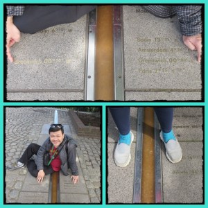 Salah satu tempat yang menjadi perhatian dan menjadi ajang foto adalah Prime Meridian Line. Garis ini artinya dimulainya perhitungan 0° untuk garis bujur dunia. Garis ini membagi dunia sebelah Barat dan sebelah Timur. Ada nama2 ibukota negara di dunia, termasuk Jakarta, dan disebutkan koordinat nya 106º 45’ E (Bujur Timur). Jadi tulisannya ada di sebelah timur (kanan) dari garis. Greenwich sendiri koordinatnya 00º 00’ E dan 00º 00’ W. Jadi tulisannya ada di sebelah kanan dan kiri garis. Ya iyalah… kan memang garis di Greenwich ini menjadi pusatnya.