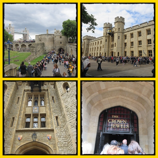 Sepanjang antrian dalam gedung, ada banyak gambar dan kisah tentang kehidupan kerajaan Inggris. Koleksi Crown diletakkan di penghujung Gedung ini. Memang luar biasa koleksi crown yang ditampilkan. Dihiasi mutiara, diamond dan batu2 mulia lainnya yang pastinya mahal banget. Koleksinya berada di dalam kotak kaca. Pengunjung bisa melihatnya dengan elevator berjalan, baik di kanan dan kiri. Jika kurang puas, masih bisa balik arah dan kembali ke elevator. Di sini tidak boleh memotret dan mengambil video.