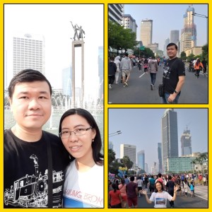 Bagi yg naik sepeda, harap maklum kalo sulit melaju dengan baik saking padatnya orang berjalan kaki. Enakan juga jalan kaki deh menurut kami, Kalo berasa panas, masuk saja ke underground MRT, jalan di bawah tanah pake AC dan keluar lagi di pintu stasiun berikutnya. Gimana, seru kan acara jalan pagi di tengah jalan raya ibukota ? Gratis loh!