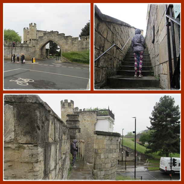 York juga memiliki City Wall sama seperti Xian, bisa baca trip kami China : 23-31 October 2015, namun ini temboknya kecil. Rata2 tingginya 4 meter dan lebar 1,8 meter. Ada beberapa gerbang benteng yang masih ada, salah satu yang terdekat dengan kami waktu itu Walmgate Bar. Kami coba naik ke atasnya, tapi ga berani lanjut karena hujan membuat jalanan di atas City Wall licin. Bisa terpeleset karena di sisi dalam benteng ga ada tembok atau pun pengaman, jadi bisa jatuh. Lagipula jalan nya cukup sempit. Di tengah hujan, basah dan dingin, kami pun memutuskan kembali ke Morrison Supermarket dan makan siang menjelang sore saja di situ.