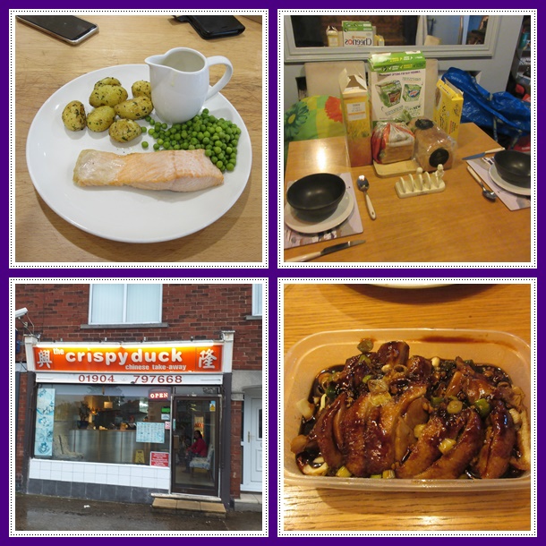 Malam hari masih hujan, jadi kami naik mobil untuk belanja dan cari makanan dekat rumah. Di kanan kiri jalan ada beberapa restaurant Chinese Food. Semuanya hanya melayani take-away, tidak bisa dine-in. Kami berhenti di salah satu restaurant, namanya “Crispy Duck“. Menunya cukup banyak, tapi kami pesan bebek panggang saja, sesuai nama resto nya. Bayarnya harus cash di sini.