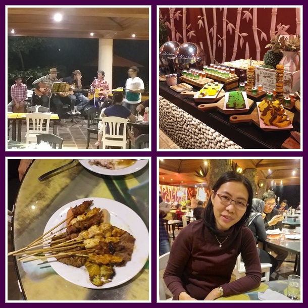 Untuk makan malam, kami tadinya sudah rencana makan di luar hotel. Tapi ternyata tadi saat check-in, setiap tamu yang menginap saat weekend diberikan kupon promo buy 1 get 1 untuk acara BBQ dinner yang diadakan hotel setiap Sabtu malam. Harganya Rp.160.000 nett per orang. Jadi dengan kupon ini, harga tersebut adalah harga untuk makan berdua. Wah, buffet all you can eat hotel cuma 80 rb per orang ? Siapa yang nolak coba, hehe..