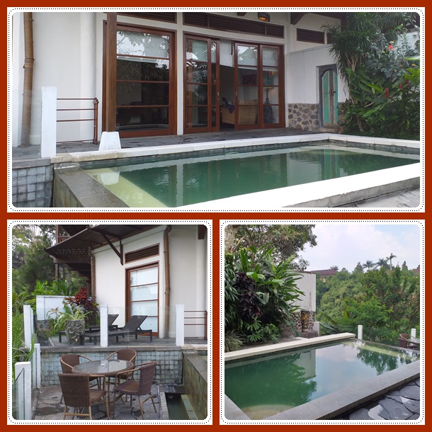 foto coverIni voucher hotel kedua yang kami beli saat promo besar2an Traveloka. Sudah lama kami mengincar tempat ini, tapi baru kali ini kesampaian. Kamar Suite with Warm Plunge Pool di Novus Giri Resort-Puncak, menjadi tempat kami bersantai kali ini. Harga resmi nya 3,7 juta per malam tetapi karena diskon menjadi 1,7 juta. Itu harga weekend dan termasuk breakfast. Lumayan banget kan. Keunikannya adalah private pool yang berisi air hangat di area pegunungan yang dingin. Nah, sejauh ini kami belum menemukan tempat seperti ini di sekitar Jakarta. Di Bali banyak private pool, tapi harus naik pesawat dan udara di Bali yang panas membuat private pool pastinya berisi air dingin. Di Bandung ada Gracia Spa yang punya private hot spring, tapi ya hanya untuk berendam, bukan untuk berenang karena kolam nya kecil. Jika pembaca ada informasi tentang private pool air hangat yang tidak jauh dari Jakarta, silakan isi comment ya.
