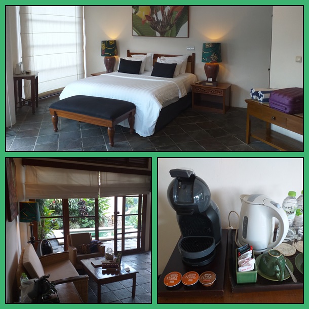 Betul saja. Ternyata ada kamar pool suite lain di 822 yang view lembahnya lebih bagus dan sensasi infinity pool nya keren karena persis di bibir tebing. Tapi pool nya kecil dan di pojokan, jadi bentuknya bukan segi empat. Ga bisa berenang, paling buat berendam saja ya. Kamar 821 di sebelahnya juga view lembahnya keren, sensasi infinity poolnya juga mantap, poolnya besar sama seperti kamar kami. Tapi ranjangnya 2 single bed, jadi bukan yang ranjang besar double bed gitu. Ada lagi kamar yang lebih besar, dimana pool nya ada 2 bertingkat, untuk dewasa dan anak. Silakan saja dipilih sesuai selera ya. Kami juga tuliskan review soal perbandingan pool suite ini di tripadvisor.