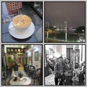 Seperti kebanyakan rumah lokal, cafe ini pun sempit namun tinggi ke atas. Kami pesan kopi di lantai satu, kemudian naik tangga besi yang sempit dan curam, hingga ke lantai paling atas (mungkin tingkat 4). Lantai ini ternyata tersambung ke rooftop, jadi bisa melihat danau Hoan Kim Lake. Tamu yang datang di sini campur, ada turis bule dan ada juga orang lokalnya. Jeff memesan Egg Coffee, kopi dengan campuran egg yolk, khas Vietnam. Kopinya jadi berbuih dan rasanya creamy. Enak banget ! Harganya VND. 40.000 per cangkir.