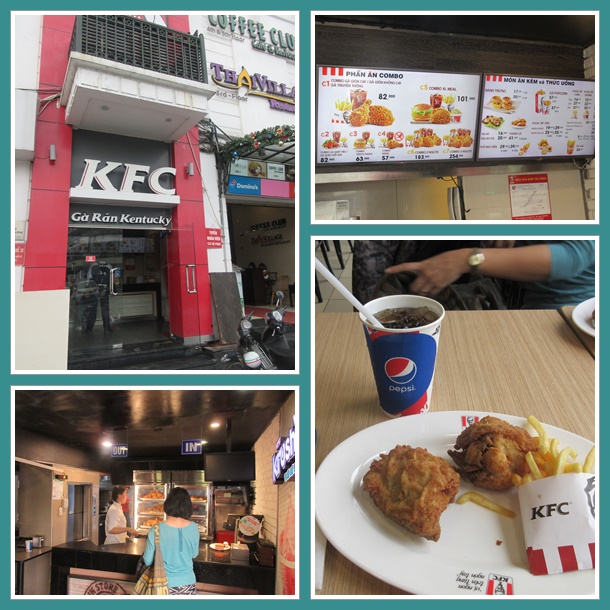 Kembali ke area Hoan Kiem Lake, karena lapar kami mencoba makan di KFC. Salah satu hobi Diana, untuk mencoba rasa KFC di berbagai negara, hehe.. Pesannya di lantai pertama, lalu naik ke lantai dua untuk ambil pesanan dan duduk makan. Lucu deh, di sini dikasi pisau dan garpu stainless buat alat makannya. Jadi seperti makan steak gitu ya perlakuannya. Kami duduk sambil melihat pemandangan di area Hoan Kim Lake. Rasanya ? Hm.. ga enak. Haha.. Mendingan KFC di Indonesia deh.