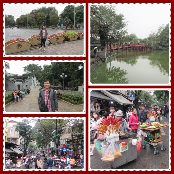 Setelah taro barang di kamar, kami mulai mengeksplor area Old Quarter. Kami jalan kaki ke arah Hoan Kim Lake, satu dari dua danau terkenal di Hanoi. Karena weekend seperti hari ini, area di sekitaran Hoan Kim Lake ternyata menjadi Kawasan Car Free Day (CFD) yang berlangsung seharian hingga malam hari. Wah asyik nih, ga perlu takut kesenggol mobil dan motor. Jalanan jadi dipakai banyak aktivitas dan acara nih. Ada yang buat booth2 promosi, ada anak2 kecil menari pake baju santa claus, ada penjual makanan, persewaan cyclo (semacam becak), dll. Catatan : Jika ke Hanoi, usahakan datang ke area Hoan Kiem Lake saat weekend, beda banget suasana nya dengan weekday.