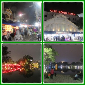 Selesai makan malam, kami menyusuri Night Market Hanoi ditemani gerimis ringan. Night market ini hanya ada di weekend, seiring dengan CFD tadi. Tentunya sepanjang jalan, baik di tengah2 jalan maupun kanan kirinya penuh dengan pedagang. Macam2 yang dijual seperti baju, jaket, sepatu, souvenir, dan berbagai pernak pernik lain. Rata-rata sudah mencantumkan harga, jika beli banyak bisa ditawar. Kalo mau beli souvenir atau oleh2 di sini bisa juga karena harganya cukup murah.
