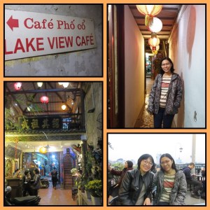 Kami langsung kembali ke hotel dan sudah ditunggu oleh Ms. Thao, teman Couchsurfing kami yang mau menemani jalan2 di sore ini. Pertama, kami diajak ke coffee shop, namanya Cafe Pho Co, bahasa Inggrisnya Lake View Café. Ternyata coffee shop yang dimaksud, letaknya ada di gang kecil, di belakang toko2. Kalo ga sama orang lokal, sepertinya mustahil bisa ditemukan. Tempat ini merupakan rumah antik jaman dulu yang dibuat menjadi cafe tapi juga masih ditinggali oleh generasi yang sekarang.