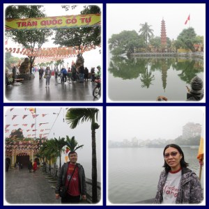 Dari sini, kami naik Grab ke Tran Quoc Pagoda di West Lake. West lake ini jauh lebih besar daripada Hoan Kim Lake. Walaupun tengah hari, suasana danaunya berkabut tebal. Karena Senin, pagoda ini pun tidak buka. Tapi tetap banyak pedagang di sekitar pintu masuknya.