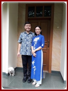 Jadilah kami beli benda souvenir dan oleh2 di sini. Diana malah beli Ao Dai, baju tradisional Vietnam untuk wanita. Bajunya panjang dengan belahan samping kanan kiri yang tinggi, tapi menggunakan celana panjang juga, jadi nyaman untuk bergerak. Ao dai ini banyak dipakai oleh warga lokal dan dipakai juga oleh pramugari Vietnam Airlines. Pas dapat yang warnanya bagus dan motifnya cantik. Ukurannya juga pas, boleh dicoba dulu dan bisa bayar pake credit card. Sip deh. Kami sebenarnya sempat mencari foto studio untuk foto dengan baju tradisional Vietnam, seperti yang kami biasa laukan di negara2 yang kami kunjungi. Tapi kami tidak menemukannya. Yang ada harus berupa tour setengah hari foto2 pakai ao dai di tempat2 wisata Ho Chi Minh. Aaah, mendingan beli langsung saja ao dai nya. Nanti bisa dipakai di Jakarta.