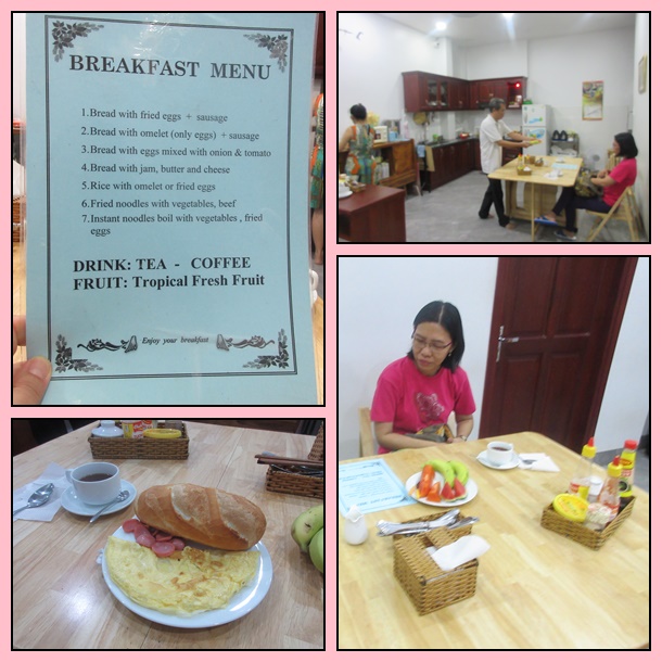 Pagi ini kami breakfast di ruang makan keluarga tersebut. Tempatnya kecil dan terbatas, tapi sangat nyaman. Perabotnya terdiri dari meja dan kursi lipat. Jadi saat breakfast semua difungsikan, tetapi setelahnya dilipat kembali sehingga lega. Ada 7 pilihan menu breakfast, semuanya simple. Antara mie atau roti atau omelet, gitu2 lah. Pilihan minumnya teh atau kopi lalu terakhir disuguhi buah2an segar. Ada pisang, buah naga, pepaya, dll. Lumayan kalo ada pisang atau buah yang bisa dibawa untuk bekal kan. Kenyang dan sehat nih. Yang meladeni tamu dan nuang teh-kopi sang ayah, lalu yang masak sang ibu. Mantap lah.