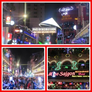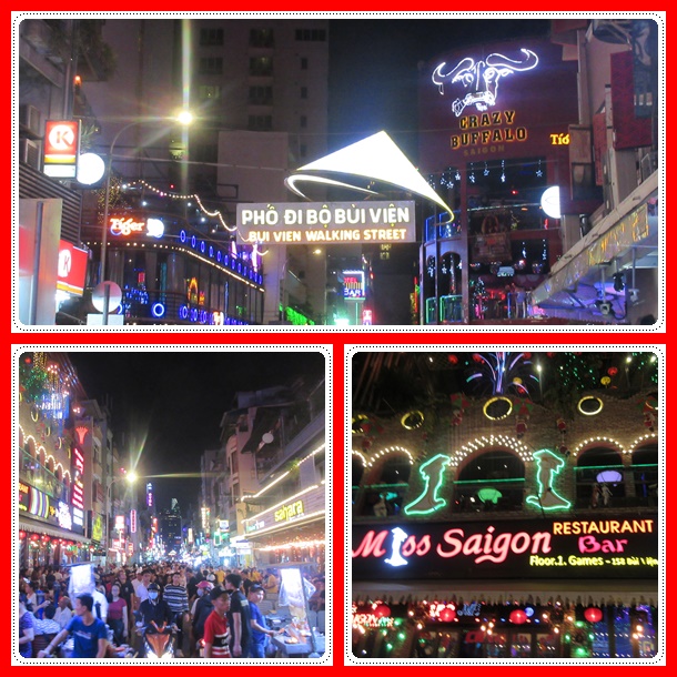 Wuiiih… ini baru benaran kehidupan malam nya kota Ho Chi Minh. Berbeda 180 derajat dengan pagi hari. Bu Vien Walking Street ditutup baik untuk mobil maupun motor. Jalanan penuh turis yang jalan kaki berdesakan, susah banget jalan di sini. Meja dan bangku digelar dari pub dan resto pinggir jalan sampai memenuhi badan jalan. Kalo ngintip ke dalam pub ya banyak tarian eksotisnya tuh. Cuma di sini jadinya campur, antara yang night club sama resto biasa yang memang cuma buat makan. Suara musik berdentum keras. Cahaya lampu juga meramaikan suasana malam ini. Banyak cewe2 club yang ada di tengah jalan. Kami lihat cowo bule yang jalan sendiri langsung ‘dihadang’ sama cewe2 club. Suasana nya mirip Bangla road di Phuket. Tapi kalo di Phuket kan lady boy, di sini cewe asli.