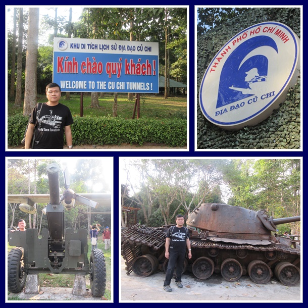 Selain tour guide kami, ada juga tour guide lokal dari cu chi tunnel. Di dalam hutan, ditemui banyak gundukan tanah seperti sarang semut raksasa yang ternyata adalah lubang ventilasi untuk jalur terowongan/tunnel bawah tanah. Kemudian ada juga patung2 tentara Vietkong, lengkap dengan persenjataan dan peralatan mereka untuk bertahan hidup dalam perang dan terowongan bawah tanah. Panjang tunnel ini 250 km, berada di bawah tanah dan banyak sekali cabangnya. Ada yang mencapai kota Ho Chi Minh dan ada yang mencapai Kamboja. Menakjubkan !