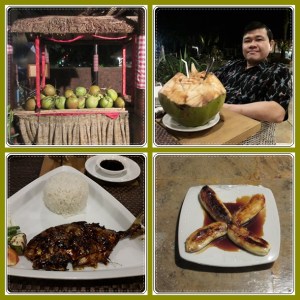 Kami menikmati semua itu di gazebo pinggir pantai ditemani angin semilir. Hawa di sini cukup sejuk loh, mungkin karena angin dingin dari Australia. Setelah langit menjadi gelap, kami pun beralih ke restoran untuk menikmati makan malam. Menu yang kami pilih yaitu ikan kuwe bakar, cap cay dan kelapa muda. Rasanya enak dan menurut kami harga makanan di restoran ini sangat terjangkau, rata2 sekitar 50-80 ribu untuk menu 1 orang, sudah termasuk tax dan service. Oke banget kan. Sama lah dengan makanan di mal Jakarta.