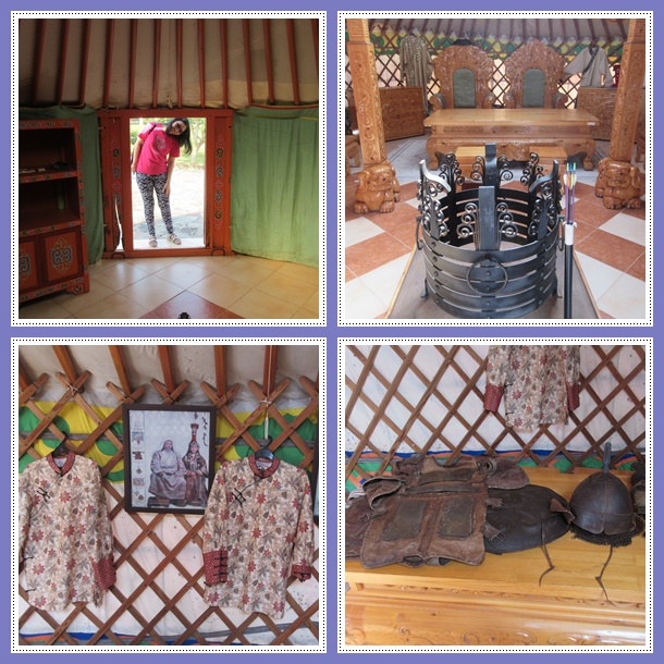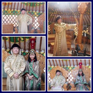 Yang unik adalah kesempatan berfoto dengan kostum khas raja dan ratu Mongol. Tentunya kesempatan yang tidak kami lewatkan. Kostumnya berupa jubah, jadi tidak perlu ganti baju, tinggal dirangkap saja. Ukurannya super besar dan rasanya tidak ada kostum untuk anak.