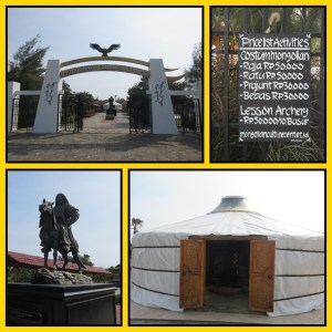 MCC ini terbuka untuk umum, tidak harus tamu hotel. Ada 2 tenda yang berisi barang-barang khas Mongol, seperti museum kecil lah. Pintunya pendek, jadi masuknya harus menunduk. Tenda2 ini benar2 asli dibawa dari Mongolia. Kalo di sana disebutnya “GER” (Mongolian Traditional Yurt/Tent).