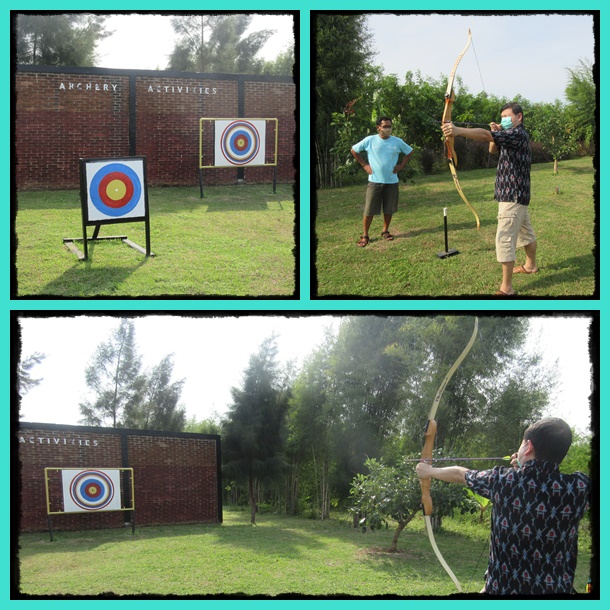 Setelah foto kostum, kami lanjut bermain panahan. Kali ini Jeff saja yang bermain, karena Diana sudah pernah mencoba panahan khas Mongol ini saat ke The Ranch Puncak dalam acara Gathering kantor. Lumayan lah, Jeff baru belajar sudah banyak yang mengenai sasaran. Mantap !
