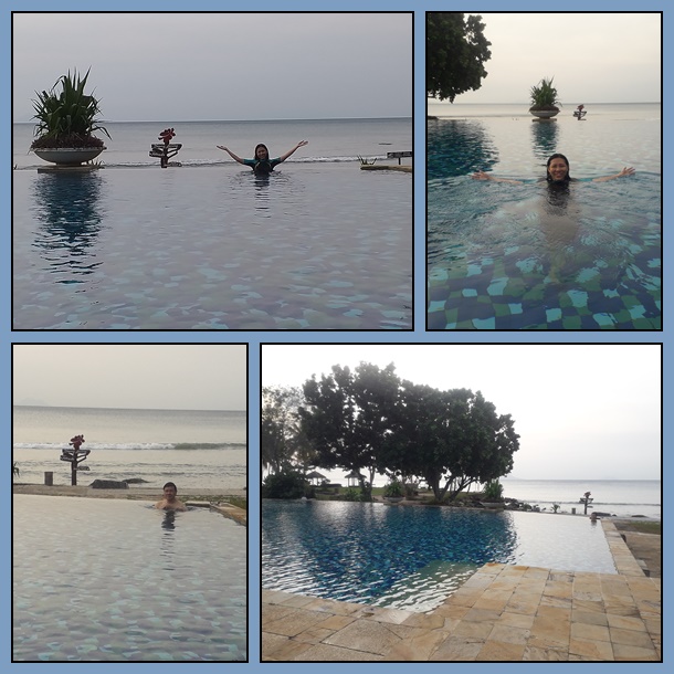 Akhirnya kami memutuskan untuk kembali ke hotel dan menikmati kolam renang nya saja. Mumpung sepi nih. Asiiik… serasa private pool, puas banget. Dari kolam renang bisa terlihat gunung krakatau di kejauhan.