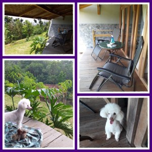 Semuanya ada 3 kamar berderetan, beda model interiornya dan beda juga luas kamar mandinya. Tapi semuanya punya teras untuk bersantai dilengkapi kursi santai dan meja. Ini terasnya tanpa pagar ya, lalu terletak di ketinggian dibandingkan tanah di bawahnya yang berundak2. Jadi buat yang bawa anak kecil atau hewan peliharaan, harus dijaga baik2 agar tidak jatuh atau loncat ke bawah karena lokasinya yang tinggi dan bisa resiko cedera. Walau begitu, anjing kami Miki ternyata loncat 2x dari teras ini (ampuuun deh, bikin sport jantung kami) dan untungnya selamat tidak kurang suatu apapun, hehe..
