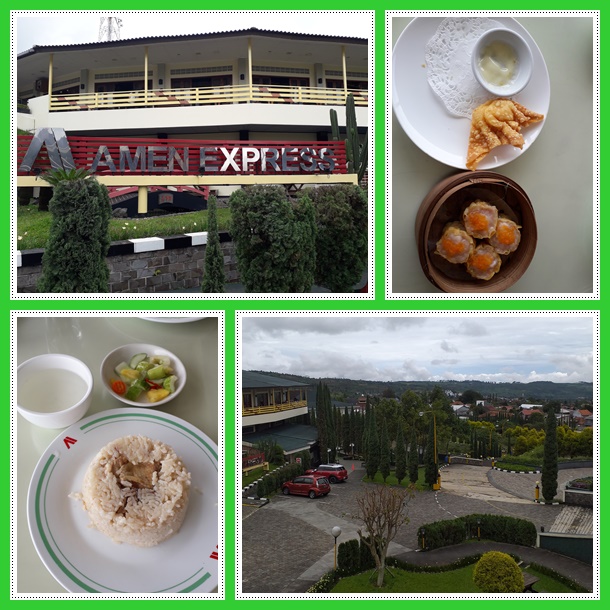 Perut sudah terisi, tapi kan masih belum bisa check-in hotel karena masih pagi. Jadi kami lanjut cari makan ya, hehe.. Situasi sebenarnya ramai tapi tidak sepadat pada hari Minggu dalam kondisi normal. Sekarang menuju Amen Express. Dulu waktu kami menginap di Novus Giri Puncak (2019), pulangnya kami mampir ke restoran Amen yang Chinese Food. Gedungnya ada di paling depan pinggir jalan. Kalo Amen Express ini masuk lagi ke arah dalam. Memang kompleks Amen Group ini luas sekali ke dalam.