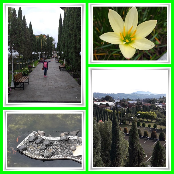 Jam 12 siang kami sampai di Puncak Pass Resort, tapi kamar belum ready karena tamu belum pada check-out. Memang jadwal check-in jam 2 siang, apalagi kami masuk hari Minggu, maklum banget lah kalo ga bisa early check-in. Oke, sambil menunggu seperti biasa, kami suka mengeksplore situasi resort. Kami jalan kaki turun ke bawah. Melewati bungalow dan kolam renang yang ditutup karena sedang diperbaiki.