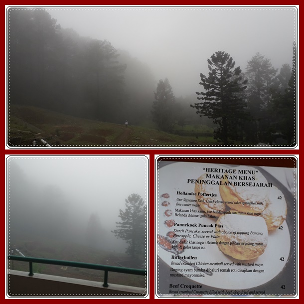 Pas lagi tertutup kabut semua, pemandangan jadi putih serasa winter deh. Bagus juga nih, mengobati kangen kami jalan2 ke luar negri. Ada lagi yang khas di Puncak Pass ini, yaitu makanan snack heritage ala Belanda. Biasanya kami memang suka mampir makan di restonya saat jalan2 ke Puncak. Yang terkenal adalah poffertjes nya. Tapi yang biasanya kami pesan adalah bitter ballennya, enak loh ! Cuma kali ini kami ga makan di hotel, justru mau menikmati yang lain.