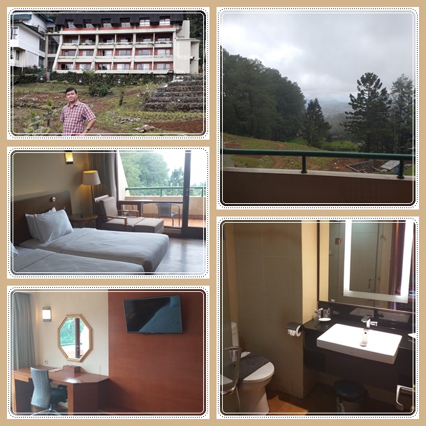 Tipe kamar yang paling standar ini ternyata hanya punya twin bed, alias ga ada kamar dengan ranjang besar. Tapi karena twin bed nya disusun berdampingan ga masalah ya, mirip ranjang besar jadinya. Ada balkon yang cukup luas untuk memandang hutan pinus yang tadi kami lalui. Bisa lihat gunung juga jika tidak tertutup awan atau kabut.