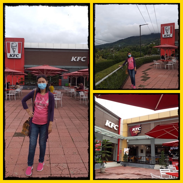 Lanjut lagi perjalanan, naik ke atas, sampailah kami di KFC Tugu Puncak. Nah, kebetulan ini sudah buka jam 9. Sekarang jam 9 lebih. Pas. Akhirnya kami sarapan nasi dan ayam KFC deh. Udah lama banget nih ga makan KFC legendaris di Puncak ini. Dulu pas Diana masih kecil cukup sering makan di sini. Asik juga makan KFC sambil memandang gunung dan merasakan udara puncak yang dingin. Aman juga secara prokes, karena outdoor dan jaraknya berjauhan dengan pengunjung lain.