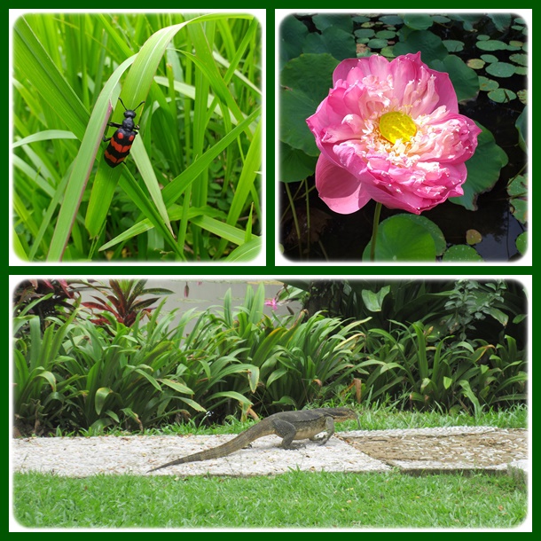 Kali ini di depan cottage ada danau kecil dengan bunga2 teratai. Selain itu ternyata kami ketemu biawak juga nih di taman depan kamar. Tahun lalu juga kami ketemu biawak di dekat resto. Sepertinya biawak yang sama ? Hehe.. Dia senang bermain dekat2 resto nih sepertinya.