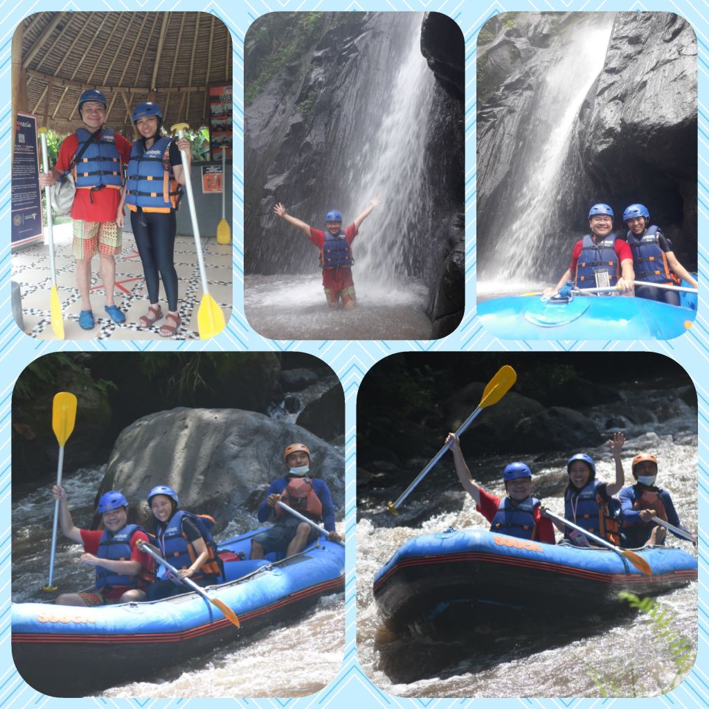 Baru di usia kepala 4 ini, kami berdua mencoba rafting untuk pertama kalinya. Kami menggunakan jasa SOBEK Adventure, salah satu yang terkenal sebagai penyelenggara rafting di Bali. Beli voucher melalui tiket.com dan mendapatkan harga yang sangat murah karena sedang promo, yaitu sekitar Rp.125.000 per orang. Minimal pembelian 2 orang ya. Jadi karena pandemi dan sepi peminat, maka rafting baru diadakan jika ada minimal 2 orang. Harga itu sudah termasuk makan siang (nasi goreng) loh.