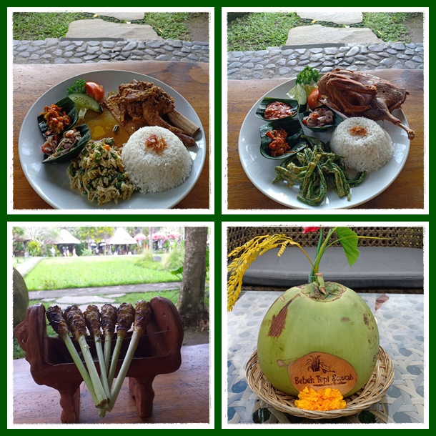 Menu yang kita pesan pastinya Crispy Duck Tepi Sawah, terus lainnya kami pesan ayam betutu dan sate lilit. Bebeknya betul2 enak, crispy di luar dan empuk di dalam. Lalu sate lilit disajikan di atas bara, rasanya juga mantap ! Untuk ayam betutu menurut kami standar, cukup enak tapi tidak istimewa. Kami sempat pesan jus semangka juga, nah.. rasanya segar dan manis… enak banget !