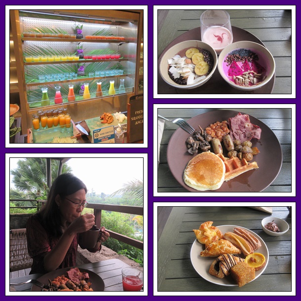 Kami juga ikutan program pranayama (latihan pernafasan dalam yoga) di pagi hari. Saat kami datang ke tempat yoga, ternyata hanya kami berdua saja yang ikutan. Wuih, enak banget, private deh ini. Sudah disediakan matrasnya juga. Kami tinggal duduk dan mengikuti instruksi. Latihannya simple dan dapat diikuti siapa saja. Rasanya fresh menghirup udara segar di pavillion ini, memandang alam hijau di depan mata, sambil mendengarkan suara burung dan gemericik air.
