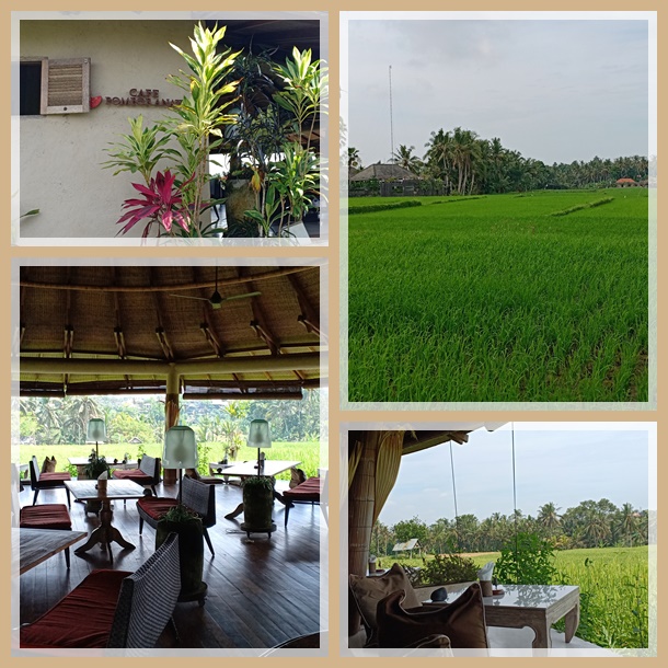 Cafe ini terletak di Jl.Subak Sok Wayah Ubud. Sempet kebingungan mencari cafe ini, karena lokasinya tidak bisa dimasuki langsung oleh mobil. Jadi mobil harus parkir dan kita harus berjalan kaki dulu melewati jalanan yang kecil dan dikelilingi sawah sekitar 1 km. Di sepanjang jalan kecil tersebut ada banyak guest house, tempat spa, tempat yoga, dan coffee shop.