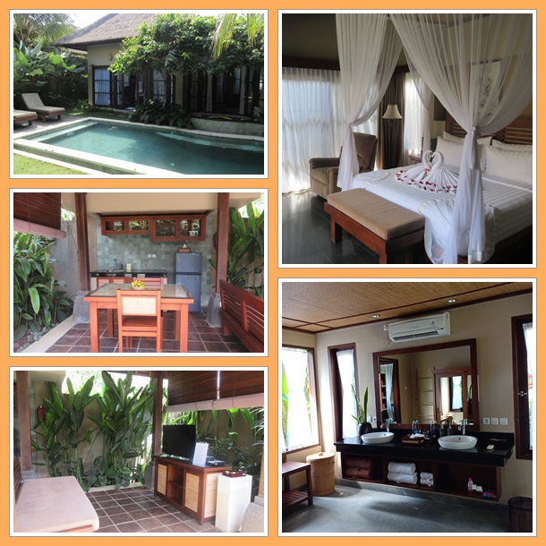 Hotel ini lokasinya lumayan terpencil di Lodtunduh, tapi ga jauh dari Westin Ubud. Kami pilih karena ingin merasakan villa dengan private pool di area Ubud. Booking melalui traveloka, dengan harga 1,2 juta per malam untuk tipe villa Royal Pool, sudah termasuk floating breakfast, afternoon snack, shuttle service gratis ke pusat kota Ubud dan beragam aktivitas yang bisa diikuti gratis sampai penyewaan sepeda gratis untuk berkeliling yang akhirnya tidak sempat kami nikmati karena keterbatasan waktu. Memang yang sangat menonjol dari berbagai review mengenai Nyuh Ubud ini adalah servicenya. Mari kita buktikan. Yang kami pilih tipe villa yang setingkat lebih mahal dari yang standard Deluxe Pool Villa.