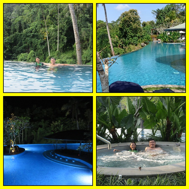 Di lantai 1, paling bawah, ada kolam renang, tempat main anak, spa, gym, juga tempat yoga. Hebatnya gym di westin ini buka 24 jam loh, bisa olah raga kapan pun. Di semua tempat tsb, selalu ada staf hotel yang standby dan menyapa dengan ramah. Kolam renangnya menghadap ke tebing hutan yang rimbun, lumayan panjang, berbentuk lagoon dan infinity pool. Sangat leluasa dan menyegarkan untuk berenang. Kedalaman kolam hanya 1,2 meter di seluruh area, sangat nyaman. Ada juga pool kecil yang untuk anak2 di bagian lebih atas.