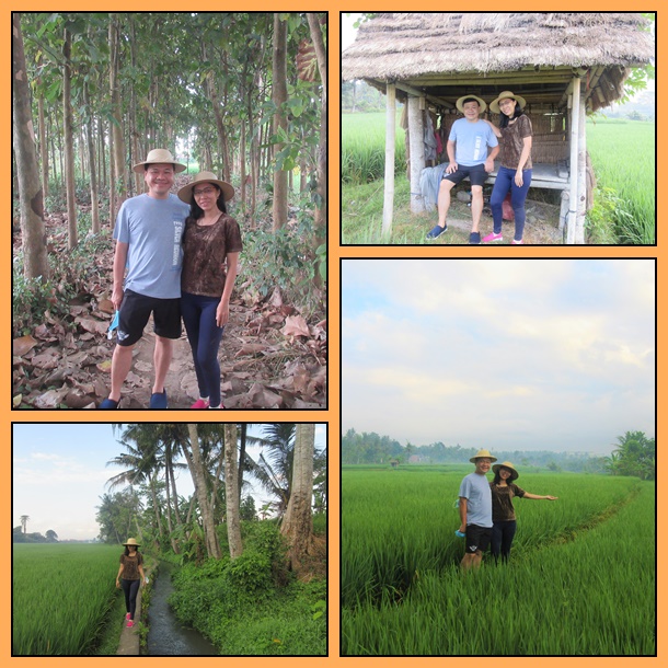 Wah, seru juga kali ini jalan2 di pematang sawah. Gampang2 susah, karena lebarnya beda2. Ada juga tanah pematang yang lembek. Jadi bisa ambles dan ternyata kami terjeblos ke lumpur, haha… keliatan orang kota ya ini. Kalo pake sepatu kets bakal jadi kotor, jadi lebih baik pakai sandal jepit atau malah telanjang kaki aja sekalian. Kami senang banget ada di tengah2 persawahan Ubud. Keren ! Pantas saja banyak wisatawan mancanegara datang ke Ubud ya.