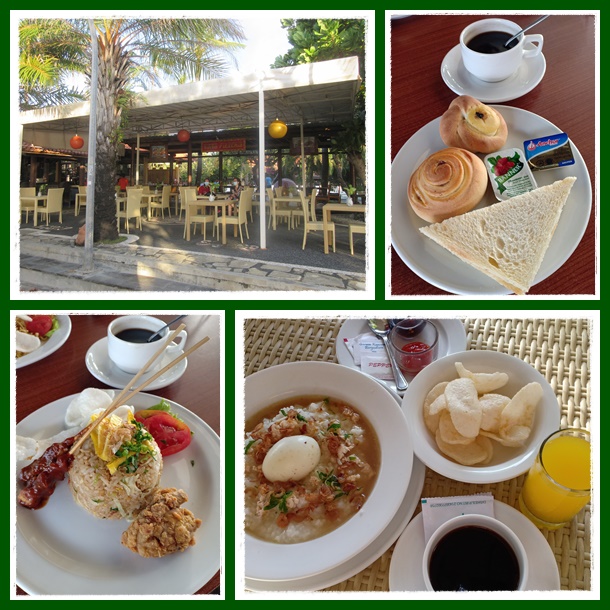 Untuk breakfastnya bisa diantar ke cottage atau disantap di resto pinggir pantai. Kami pilih di resto nya saja, tempatnya nyaman dan oke banget untuk duduk2 santai ditemani semilir angin dan pemandangan laut yang indah.